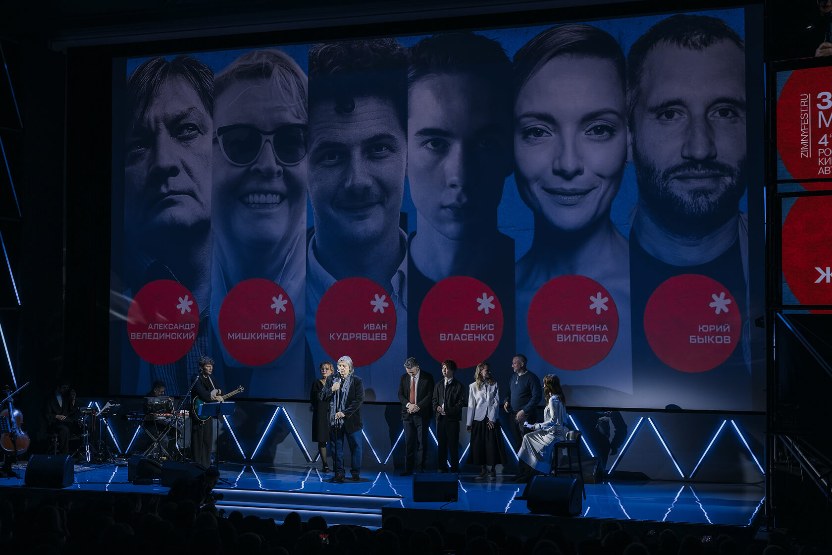«Сегодня мы начинаем писать историю четвертого фестиваля авторского кино “Зимний”. Кажется, совсем недавно мы открывали первый фестиваль — время летит моментально. Спасибо огромное авторам и продюсерам, которые предоставили картины нам на фестиваль. Мы вас очень любим. И как сказал на презентации программы этого года Юрий Быков: “Не переживайте, если вы ничего не получите, самое главное — что вы уже попали на этот фестиваль, вы уже победили!” Громадное спасибо жюри за то, что согласились на этот нелегкий труд выбора. В общем, вам будет тяжело. Программа сегодня очень-очень интересная».